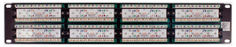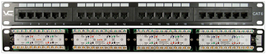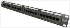 CAT6 Patch Panels 24 Ports 110 type termination; meet and exceed CAT6 specifications Vertical Cable Patch Panels comply with ANSI/TIA/EIA-568C.2 Category-6 performance requirements. Made with high impact plastic and rolled-edged steel. T568A & T568B wiring color schemes on the IDC, make installation easy. They feature writable and erasable marking surfaces for each port on the front panel for efficient system management. | Features: • Flexible design (12 & 24 ports for 1U; 48 ports for 2U; 96 ports for 4U) • Made of sturdy, rolled-edge steel • High-density 1U/2U/4U, 19” RMS (Rack Mount Standard) design • Mounts on any standard 19” rack or wall mount • Comes with rack mounting screws and washers • Fully enclosed design for protection of printed circuitry during termination • T568A and T568B wiring color codes • Contact blocks constructed from UL94-V-0 high-impact, fire-retardant ABS or PC material • Designed for maximum strength and compatible with all standard 110 installation tools • Pair punch sequence enables a pair twist within 1/2” of termination • Beryllium copper contacts: 50μ gold-plated pins over100μ nickel layer. • Insertion life cycle: 750 cycles (minimum) / I.D.C. 250 cycles (minimum) • Operating temperature: -40oC to +68oC • Meets EIA-310-D specifications • FCC Part 68, UL Certified, RoHS Compliant | |