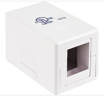 Surface Mount Boxes - 1Port - Without Jack Designed and Engineered for all Vertical Cable V-Max U-Style Keystone Jacks. | Features : · Universal Surface Mount Box · 1-Port · No Jack · Fits most CAT3, CAT5E, CAT6, CAT6A jacks · Available in Almond, Ivory or White · Two piece construction · Double-sided tape, screws and ties included · UL Listed, RoHS Compliant · 50 per bag |