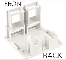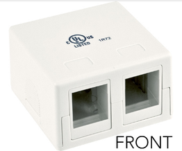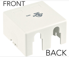 Surface Mount Boxes – 2 Ports - Without Jack Designed and Engineered for all Vertical Cable V-Max U-Style Keystone Jacks | Features : · Universal Surface Mount Box · 2-Port · No Jack · Fits most CAT3, CAT5E, CAT6, CAT6A jacks · Available in Almond, Ivory or White · Two piece construction · Double-sided tape, screws and ties included · UL Listed, RoHS Compliant · 50 per bag | |