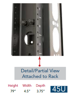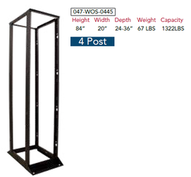 Open Rack Enclosures – 4 Post Vertical Cable’s sturdy 2 or 4 Post Racks are made of hard impact aluminum. The Racks are compatible with all standard 19’’ units and accessories. The rack posts are pre drilled for #12-24 screws, and marked in unit increments | Features : · Aluminum frame · Pre drilled holes for #12-24 screws · Adjustable depth · Includes 10 screws and washers · Highly functional and stylish, value packed and multiple-vendor compatibility · Unit markings on front and rear posts | ![]() |