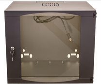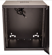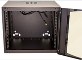 9U Wall Mount Enclosure 9U Wall Mount Enclosure – Needs assembly Finish and Color: · Enclosure body and front door is finished with a phosphatized treatment and electrostatic powder paint Epoxy / Polyester coat, Black | Enclosure: • Includes 1 fan with USA plug and wire • 10 sets M6 screws and nuts • 5mm tempered glass front door • Front access | Height Width Depth Color Weight Capacity 18″ 21.25″ 17.75″ Black 38LB 66LB |