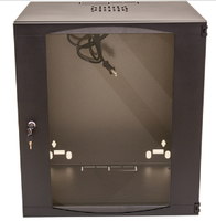 12U Wall Mount Enclosure 12U Wall Mount Enclosure- Needs Assembly Finish and Color: · Enclosure body and front door is finished with a phosphatized treatment and electrostatic powder paint Epoxy / Polyester coat, Black | Enclosure: · Includes 1 fan with USA plug and wire · 10 sets M6 screws and nuts · 5mm tempered glass front door · Front access | Height Width Depth Color Weight Capacity 23.25″ 21.25″ 17.75″ Black 45LB 66LB |